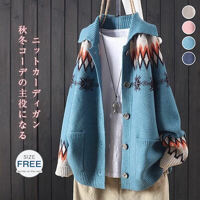 カーディガン レディース ニットカーディガン 秋 冬 長袖 ニット 羽織り 秋物 花柄 セーター コート 前開き 防寒 秋冬 着心地 ボタン 厚手 ポケット 幾何学柄 アウター ナチュラル風 カジュア