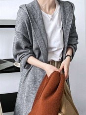カーディガン レディース ニットパーカー 秋冬 長袖 フード付き ニット ロング カーディガン 冬物 ニットアウター アウター コート 秋コート ボリューム感 羽織り ルーズ フード 無地 きれいめ