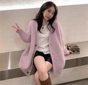 ニットカーディガン ニット 春 秋 冬 アウター ライトアウター レディース カーデ シャギー 長袖 羽織り ミドル丈 起毛ニット トップス セーター ドロップショルダー シンプル 大人 カジュアル