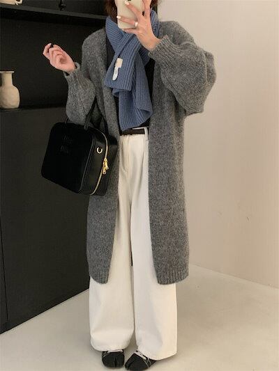 カーディガン ニットカーディガン レディース 秋 冬 春 ロングカーディガン ニットセーター ロング マキシ丈 アウター Vネック 長袖 ルーズ 羽織 カットソー ゆったり 長い 柔らかい 無地 シン