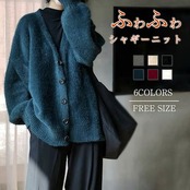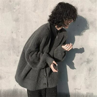 ニット カーディガン レディース シャギーニット ニット ロングカーディガン Vネック 前開き 羽織る 柔らかい ゆったり 秋冬 ニットセーター トップス もっちり アウター 体型カバー ふわふわ 人