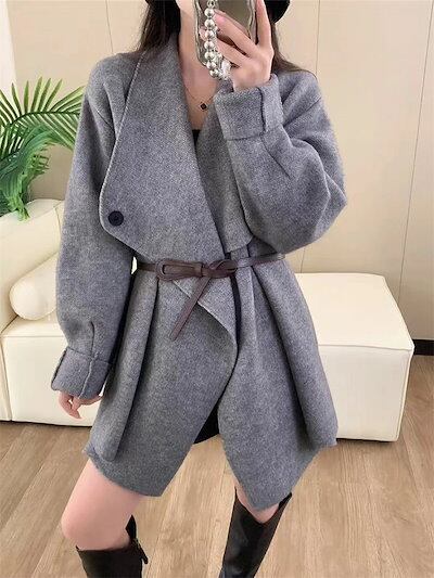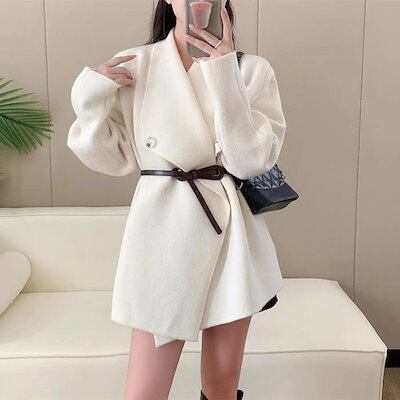 ニットカーディガン レディース 長袖 ニットコート 無地 アウター 春秋 ベルト付き カーデ ゆったり トップス 前開き 羽織 暖か ふわふわ ゆったり カジュアル キレイめ かわいい グレー オフホ