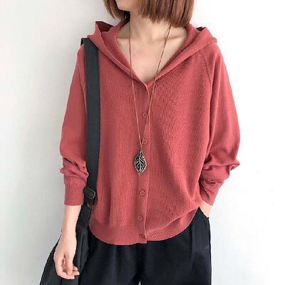 カーディガン 長袖 春 フェミニン 着回し シンプル カジュア 冬 ゆったり ニット ニットパーカー フード付き パーカー セーター 羽織 秋 ニット レディース ニットカーディガン さっと羽織れる