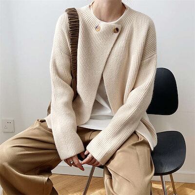 ニットカーディガン 着回し シンプル ニット羽織 冬 レディース 体型カバー さっと羽織れる ゆったり 秋 セーター フェミニン 柔らかい 長袖 ニット 厚手 お洒落 カーディガン カジュアル