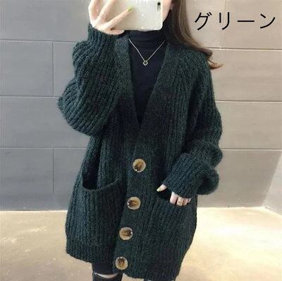 オフィス 冬 無地 ゆったり ニット アウター レディース 黒 カジュアル ポケット付き カットソー トップス 長袖 厚手 秋 春 大きいサイズ カーディガン