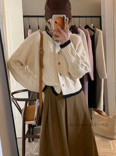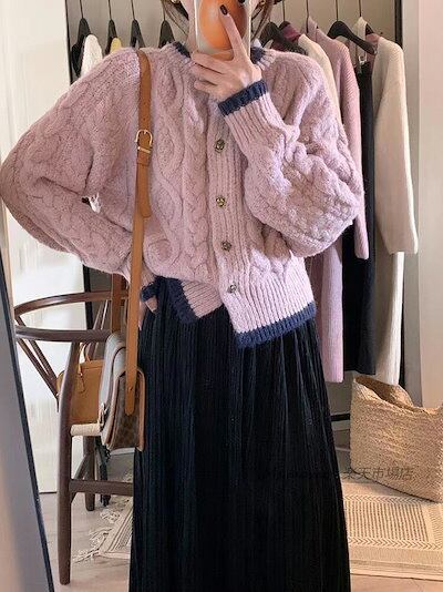 40代 配色 春秋冬 オシャレ韓国風 ニットカーディガン 50代 ニットカーディガン 長袖セーター ショット丈セーター ゆったりプルオーバー レディース 大人ニットアウター 30代