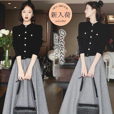 秋冬 30代 長袖ニットトップス 通勤 着痩せ 40代 結婚式ドレス オシャレ 大人 ニットカーディガン きれいめ ワンピース 50代 Aラインスカート 上品 レディース