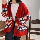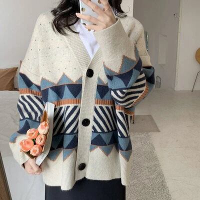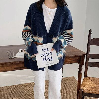 秋 ゆったり 冬 ニットセーター レディース レトロ 羽織 長袖 ノルディック トップス 大人可愛い ニット 暖か カーディガン トレンド 可愛い
