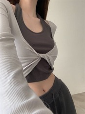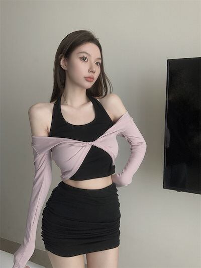 2024秋 長袖 Tシャツ ショート丈 カットソー トップス カジュアル 配色 韓国系ストリート ロゴ へそ出し タイトネックスリーブ 肌見せ T ファッションレディース かわいい衣装風冬トップス