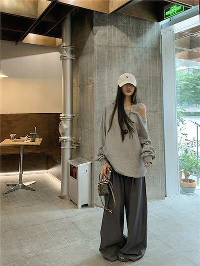 2024 秋冬 トップス 長袖 かわいいラウンドネック Tシャツ 肌見せ レディース 韓国風 ルーズ ゆったり 無地 カジュアル おしゃれサイズ シルエットファッション系コーデ衣装お出かけ