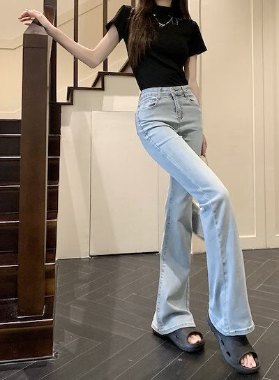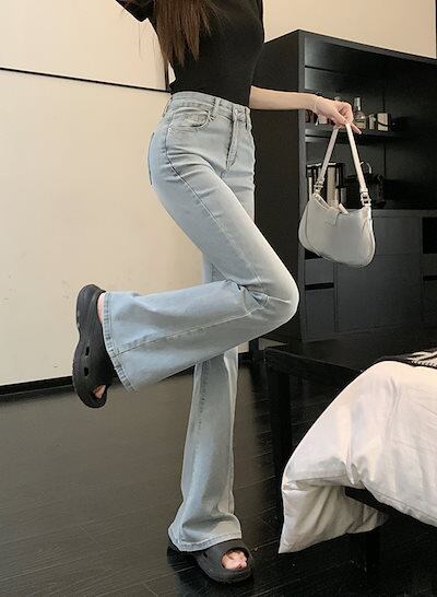 2024秋 パンツ デニム ジーンズ ロング丈 ハイウエスト 美脚効果 脚長効果 細見え ウォッシュ加工 冬 春 おしゃれ かわいい 韓国ファッション系 お出かけ