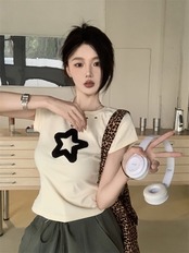 2024 春夏トップス 大人可愛い 刺繍 半袖 Tシャツ 韓国 ラウンドネックロゴスリム かわいいへそ出し ショート おしゃれスリーブ カジュアル丈 ファッション系レディースストリートお出かけ T