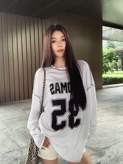 秋韓国可愛い風トップス Tシャツ ファッション系 長袖 プリント ルーズ サイド ペイントシルエットゆったり丈 レディースサイズ韓国Vネック おしゃれ カジュアル メンズライク T