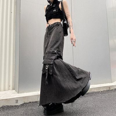 2024 春秋 スカート ロング丈 ポケット ハイウエスト ロング スカート 美脚効果 脚長効果 細見え 冬 おしゃれ かわいい サイド韓国系ファッション レディース お出かけ