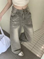 2024春夏パンツ デニム ジーンズ ロング丈 ハイウエスト 美脚効果 脚長効果 細見え 秋冬 おしゃれ 加工 かわいい 韓国ファッション レディース お出かけ