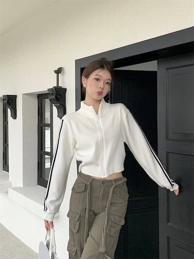 2024 秋 韓国 かわいい ニットネック レディース アウター ブルゾン お出かけ ブラック ライトカーキ アウター長袖セクシートップスサイド冬カジュアルファッション系お出かけフル丈トラック