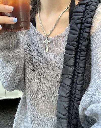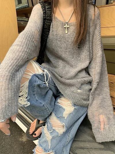 2024春夏 長袖 ニット プルトップスストリートカジュアエコルシルエットクルーネック加工色っぽ 女っぽ カジュアル 大人っぽ 上品 サイズフェミニンゆったりカジュアル レディースゆったり秋冬春