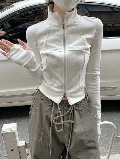2024秋 アウター ショート ブルゾン かわいい フル ブルゾン トップス ハイ スタンド ショート ストリート レディース 長袖 カジュアル ファッションお出かけトラック