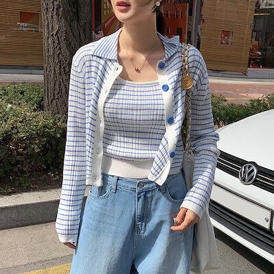 韓国ファッション レディース ニットカーディガン 可愛らしいニット カジュアルセーター 2点セットカーディガン