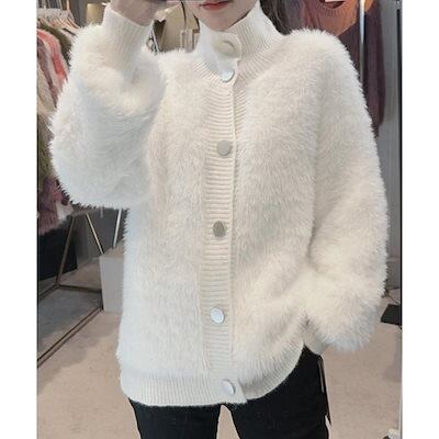 カーディガンレディース セーター 秋冬 厚手ゆったりニットアウター