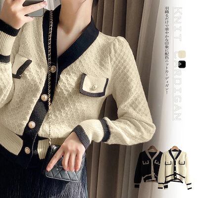 ニットカーディガン 配色 レディース