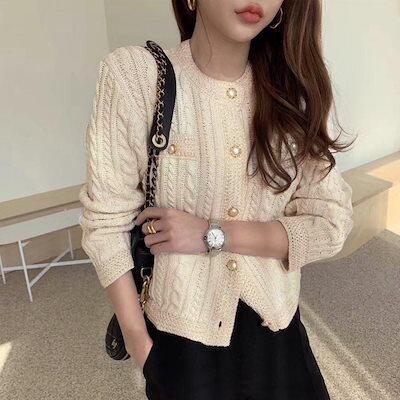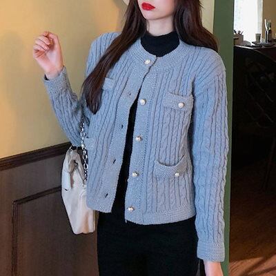 ニットカーディガン ケーブル編み 秋冬