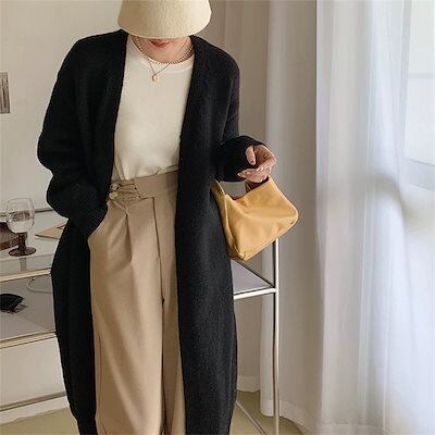 韓国ファッション ゆったりロングニットカーディガン レディース 無地百掛けカジュアル カーディガン 大きいサイズ体型カバー ニットセーター 着痩せ 秋アウター