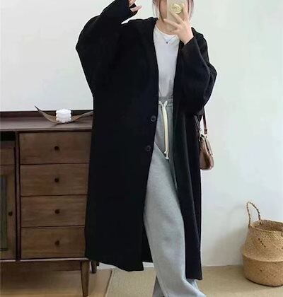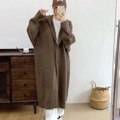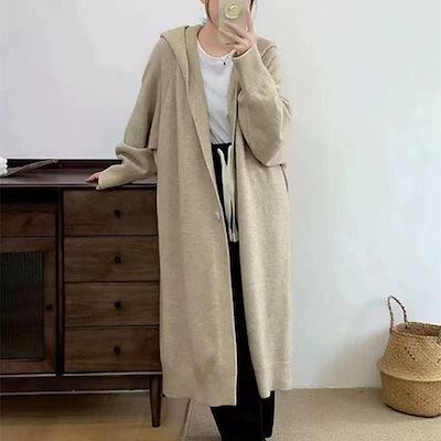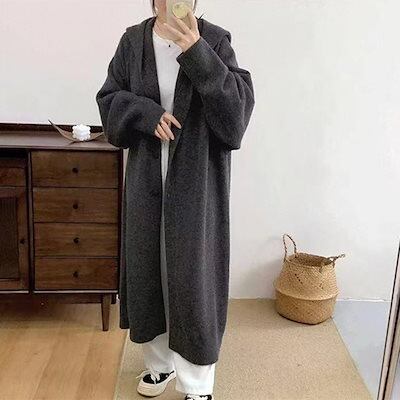 韓国ファッション ゆったり ロングニットカーディガンフード付き レディース 無地百掛けカジュアル軽薄 カーディガン 大きいサイズ体型カバー ニットセーター 着痩せ 秋アウター