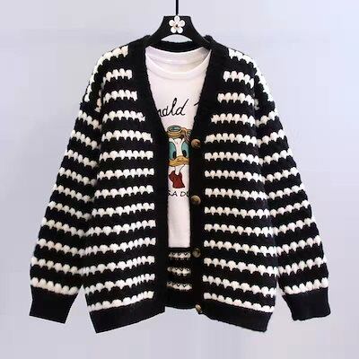 韓国ファッション ゆったりレディース カーディガン 大きいサイズ体型カバー ニットセーター Vネック・カーディガン・ジャンパー