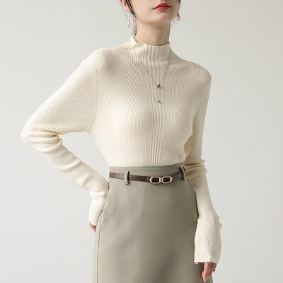韓国ファッションレディース ベーシックニット ニットセーターカシミヤタッチ秋冬無地長袖プルオーバーハーフハイネックボトムシャツ