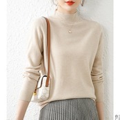 韓国ファッションレディース ベーシックニット 気質ハーフハイネックボトムシャツカシミヤタッチインナースリムニット長袖春秋ジャンパー
