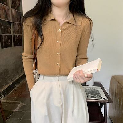 韓国ファッションレディース カシミヤタッチ長袖ベーシックニット 着痩せセーター ニット