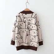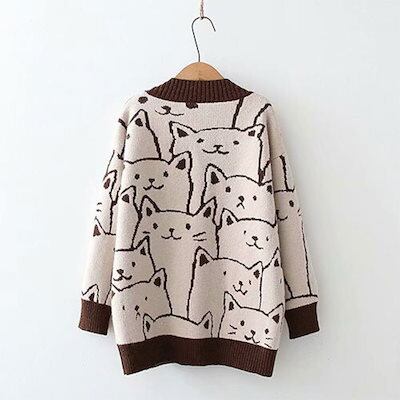 2024秋冬 猫柄デザイン ニット コート Vネック カジュアル トップス アウター ボトムス レディース ワンピース 春 夏 半袖 長袖 きれいめ ロング