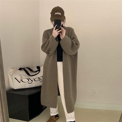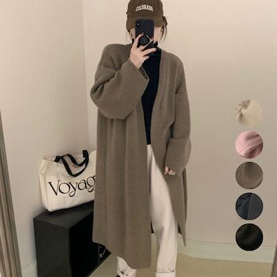 韓国ファッション ゆったり セミロングニットカーディガン レディース 無地百掛けカジュアル軽薄 カーディガン 大きいサイズ体型カバー ニットセーター 着痩せ 秋アウター
