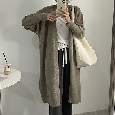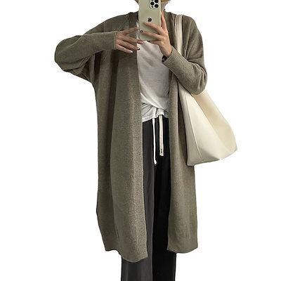 韓国ファッション ゆったりロングニットカーディガン レディース 無地百掛けカジュアル カーディガン 大きいサイズ体型カバー ニットセーター 着痩せ 秋アウター