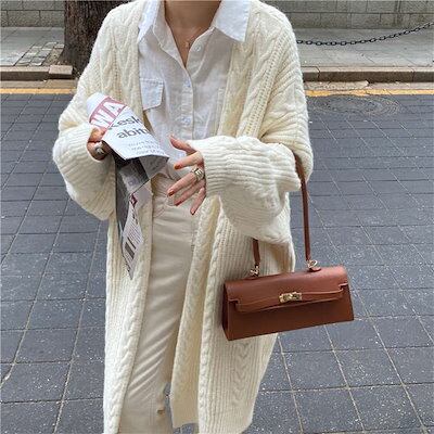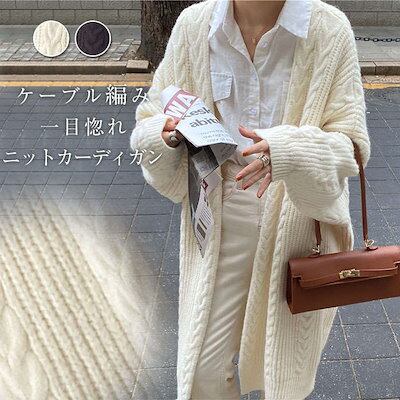 ニットカーディガンカーディガン ケーブル編みニット レディース ロング丈 秋冬 ロングカーディガン ニットカーディガン カーデ コート アウター 厚手 ニット セーター ビッグシルエット ゆったり 柔