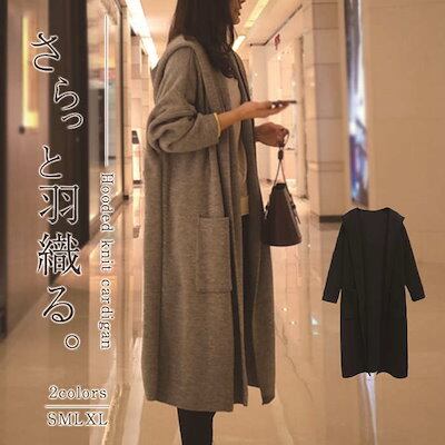 カーディガン レディース 秋冬 ニット ロング フード付き パーカー 厚手 羽織り セーター アウター ゆったり ボリューム 防寒 長袖 トップス ローゲージニット ベルト ケーブル編み おしゃれ カ