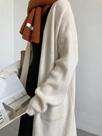 ニットカーディガン ロングカーディガン レディース 長袖 前開き 秋冬 ロング 羽織り アウター ゆったり 大人 きれいめ お洒落 カジュアル 暖かい 防寒 通勤 普段着 オフィス フェミニン
