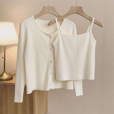 アンサンブル カーディガン レディース トップス ニットキャミソール サマーニット ニットアンサンブル ニット キャミソール セットアップ セットアイテム 長袖 コーデ ベーシック 無地 薄手 伸縮