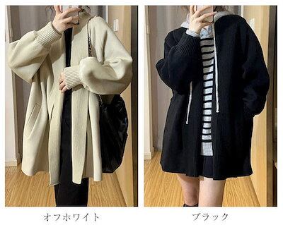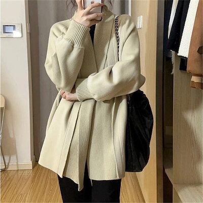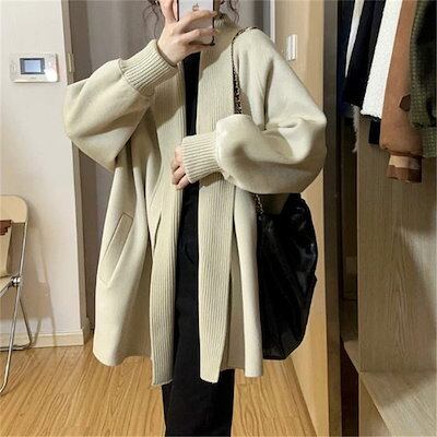 カーディガン レディース 秋 チュニック 厚手 冬 ニット 羽織 セーター 前開き アウター コート ゆったり 体型カバーノーカラー 長袖 お尻隠し きれいめ おしゃれ かわいい お出かけ 防寒 暖か