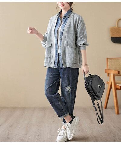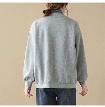 カーディガン レディース 秋 コート アウター 切り替え 羽織 前開き ゆったり 体型カバー トレーナー 折り襟 長袖 きれいめ おしゃれ かわいい 大人 お出かけ 大きいサイズ グレー ブラック M