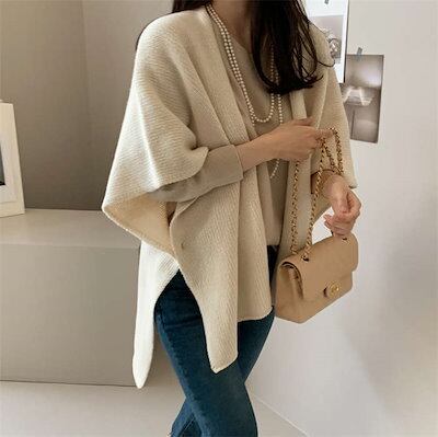 カーディガン レディース ニット ドルマンスリーブ 無地 ストール 体型カバー ポンチョ ショール 肩掛け 春 秋 冬 トップス 大きいサイズ ジレ ベスト ケープ 前開け アウター コート 羽織り