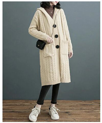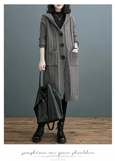 ロングカーディガン レディース 秋冬 ニットカーディガン 無地 厚手 ロング丈 カーデ アウター ロングカーデ 長袖 羽織り 冷房対策 体型カバー ゆったり シンプル カジュアル エレガント 通勤 通