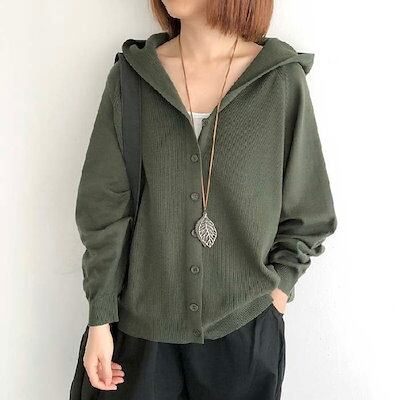 カーディガン 長袖 春 フェミニン 着回し シンプル カジュア 冬 ゆったり ニット ニットパーカー フード付き パーカー セーター 羽織 秋 ニット レディース ニットカーディガン さっと羽織れる
