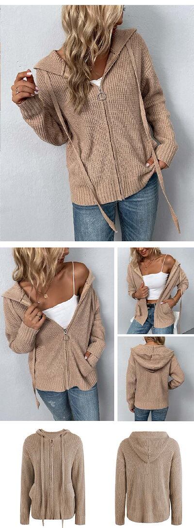 ニット レディース フード付き フェミニン セーター 羽織 冬 着回し さっと羽織れる 秋 ゆったり パーカー カジュアル ニットパーカー 長袖 シンプル 柔らかい 体型カバー ニットカーディガン