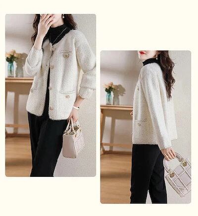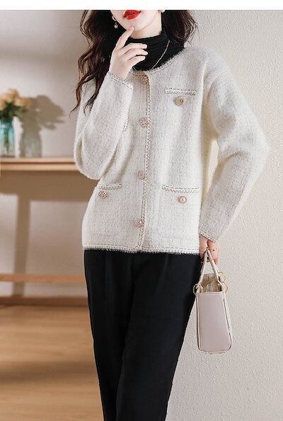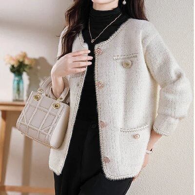 冬 さっと羽織れる ふわふわ 着回し カジュアル ゆったりフェミニン 体型カバー レディース 長袖 セーター 柔らかい シンプル もこもこ ツイード調 ニットカーディガン カーディガン 秋 ニット羽織