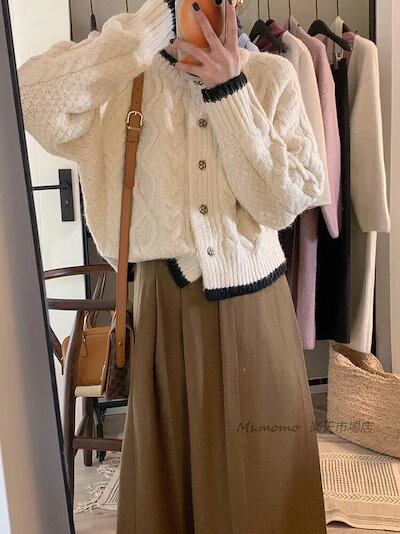 40代 配色 春秋冬 オシャレ韓国風 ニットカーディガン 50代 ニットカーディガン 長袖セーター ショット丈セーター ゆったりプルオーバー レディース 大人ニットアウター 30代