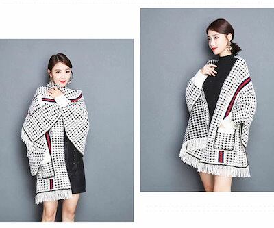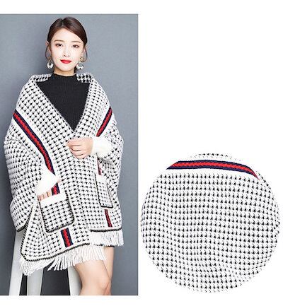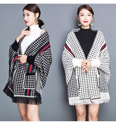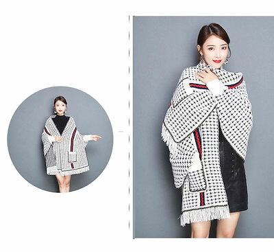 レディース レディース ニットカーディガン 大判ストール 袖付ポンチョ風ストール 千鳥柄 (メール便) ニットセーターレディース