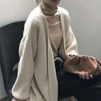 秋 カーディガン きれいめ ロングニット 長袖 トレンド カジュアル 大人可愛い 羽織り レディース トップス 重ね着 冬