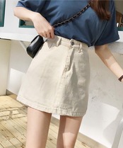 韓国風 デニム ミニスカート 【即納】 台形 ハイウエスト ミニ レディース 韓国 プチプラ おしゃれ